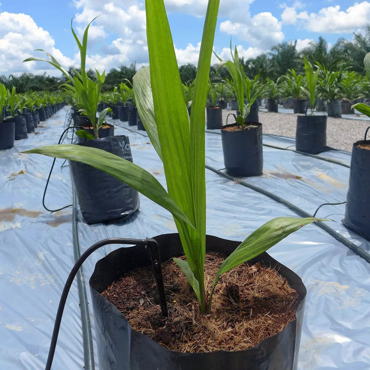 “วิธีการเลือกซื้อพันธุ์ปาล์มน้ำมันให้ดี ควรเลือกต้นกล้าที่มีอายุ 8-12 เดือนขึ้นไป มีลักษณะสมบูรณ์แข็งแรง ทรงต้นแผ่กว้าง ไม่สูงชะลูด โคนต้นอวบ สมบูรณ์แข็งแรง ไม่มีต้นกล้าที่มีลักษณะผิดปกติปะปนมา เช่น ในระยะอนุบาลแรก อายุ 2-4 เดือน มียอดและใบบิดเบี้ยว ใบขดม้วนรอบเส้นกลางใบ ใบเรียวแคบ ใบกึ่งกลางคอด และต้นแคระแกร็น หรือในระยะอนุบาลหลัก อายุตั้งแต่ 8 เดือนขึ้นไป