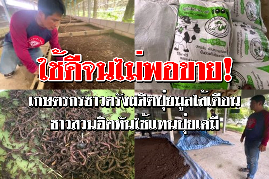 ซึ่งเมื่อทำมาใช้เองในสวน ปรากฏว่าใช้ได้ผล ลดต้นทุนการใช้ปุ๋ยเคมี จึงทำออกขายให้แก่สมาชิกแก่คนรู้จักที่เห็นตัวอย่างด้วย จนผลิตปุ๋ยไม่ทันเชนกัน นอกจากนั้น ขณะนี้ทางฟาร์มก็ขายไส้เดือนเองด้วยกก.ละ 600 บาท มีลูกค้าสั่งจำนวนมาก จนผลิตให้ไม่ทัน เพราะต้องขยายพื้นที่การเลี้ยง เพื่อผลิตปุ๋ยป้อนให้ได้เพียงพอความต้องการของชาวสวน