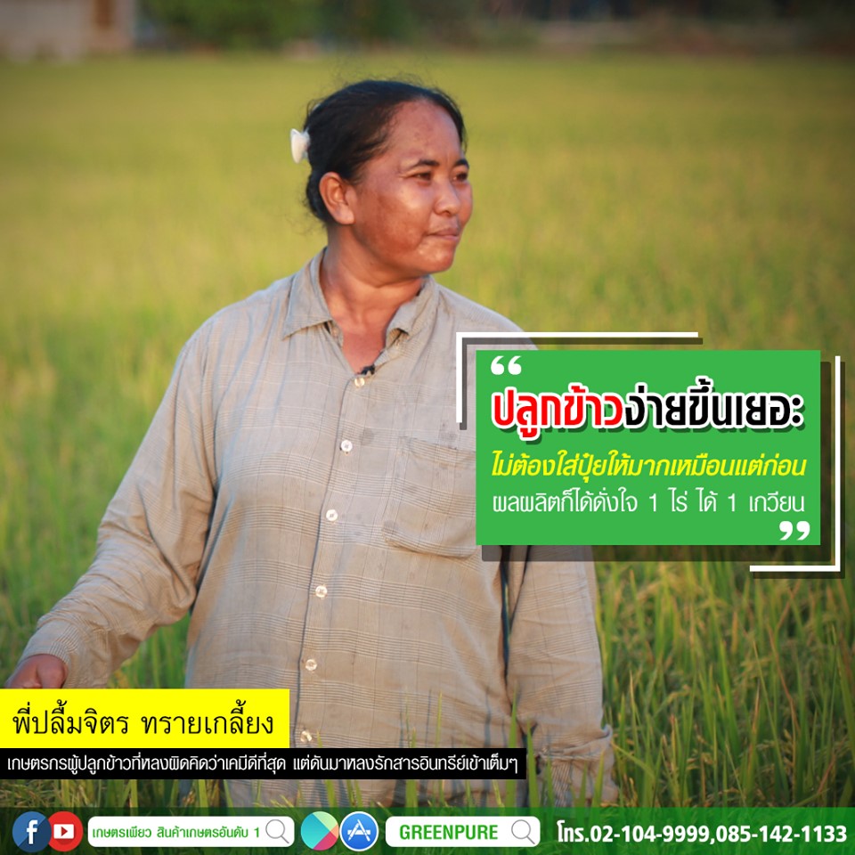 “ฉีดง่ายเห็นผลเร็วมาก ข้าวโตไวต้นสูงมากเสี่ยงล้มจริงแต่ต้นแข็งแรงมาก รากแน่น ได้ผลผลิตสูงเกินเป้ากว่าที่คิดไว้คือไร่ละเกวียน”