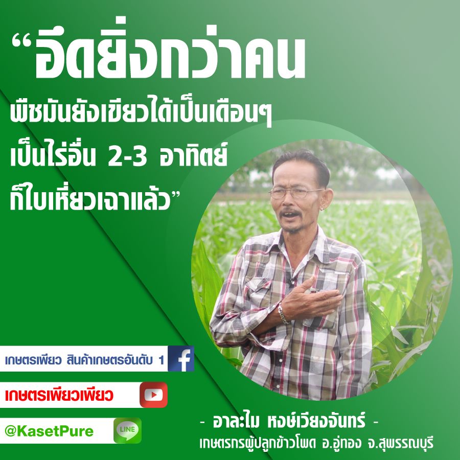 “ทั้งถึกทั้งทน เพิ่มพลังให้ต้นข้าวโพดแข็งแรงต้านทานต่อโรคและแมลงได้ดี ใบเขียวขึ้นไม่เหี่ยวไม่เฉาสู้ได้ทุกสภาพอาหารด้วยสารอาหารครบถ้วนจากตัวนี้”