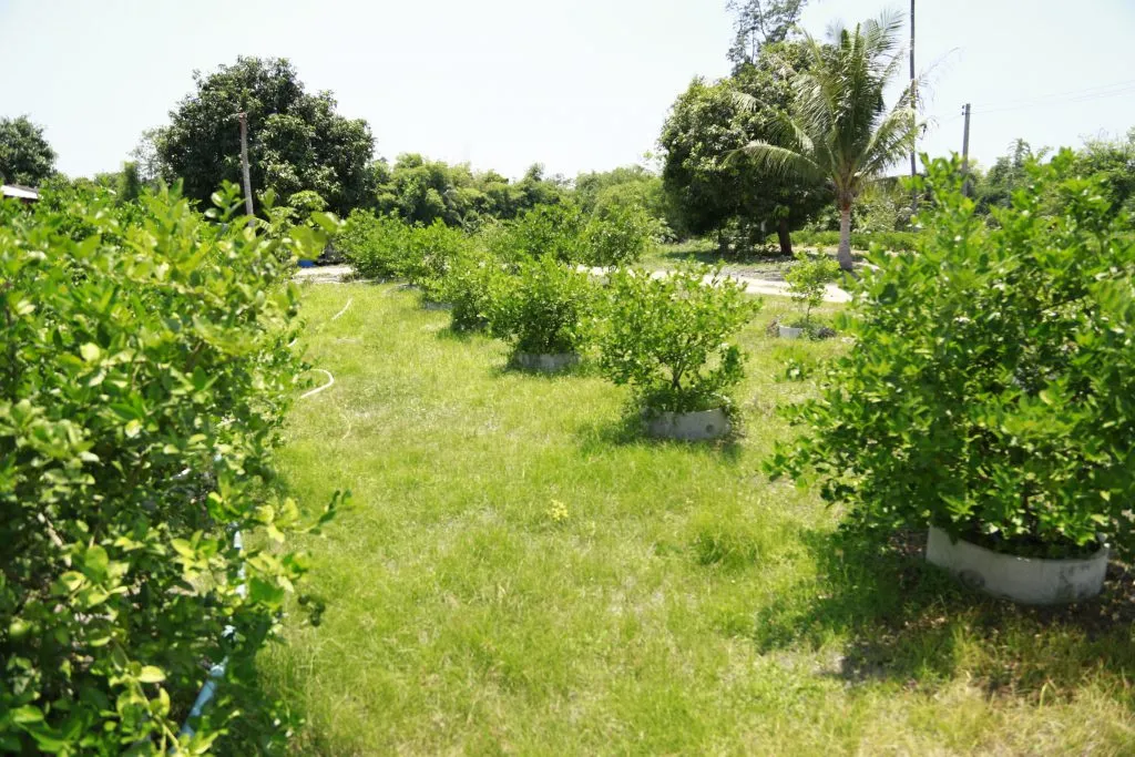 การยกร่องเพื่อปลูกมะนาว