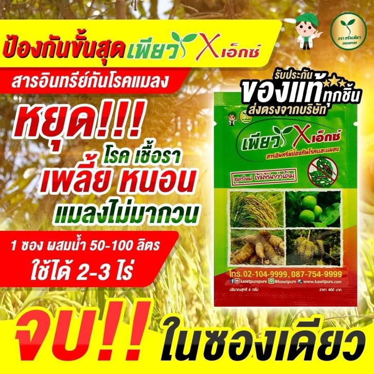 ✅เพียวXเอ็กซ์ กำจัดโรคแมลงศัตรูพืชเพียวเอ็กซ์ สารอินทรีย์ป้องกันและกำจัดโรคแมลงศัตรูพืช อาทิเช่น เพลี้ย หนอน แมลงบั่ว และแมลงชนิดต่างๆและช่วยป้องกันเชื้อรา โรคราก เน่าโคนเน่า ใบจุด ช่วยลดปัญหาผลผลิตเสียหายจากการเข้าทำลายของโรคและแมลงได้ สกัดจากธรรมชาติ จึงปลอดภัย สามารถกำจัดแมลงตั้งแต่ระยะไข่ จนถึงตัวเต็มวัย