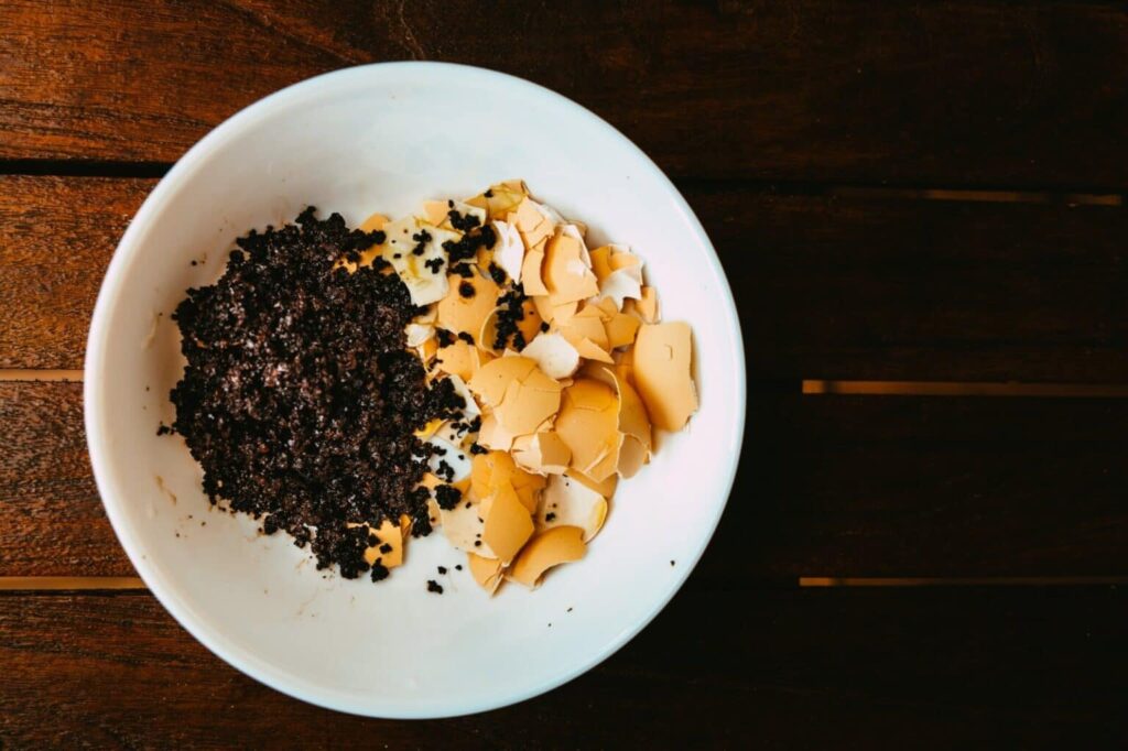 3.ผสมกากกาแฟกับเปลือกไข่ไก่บด คลุกเคล้าให้เข้ากัน แล้วนำไปโรยรอบต้นไม้ สามารถช่วยไล่แมลงและศัตรูพืชได้