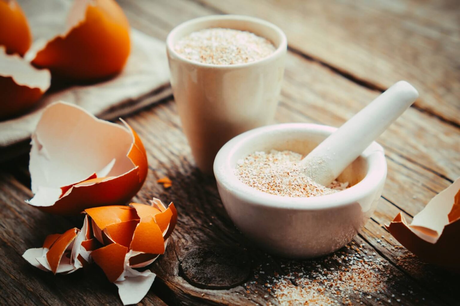 ขั้นตอนแรกให้นำเปลือกไข่ไปตากแดด ประมาณ 3 – 5 วัน หลังจากนั้นให้นำเปลือกไข่ มาตำ หรือปั่นให้ละเอียด