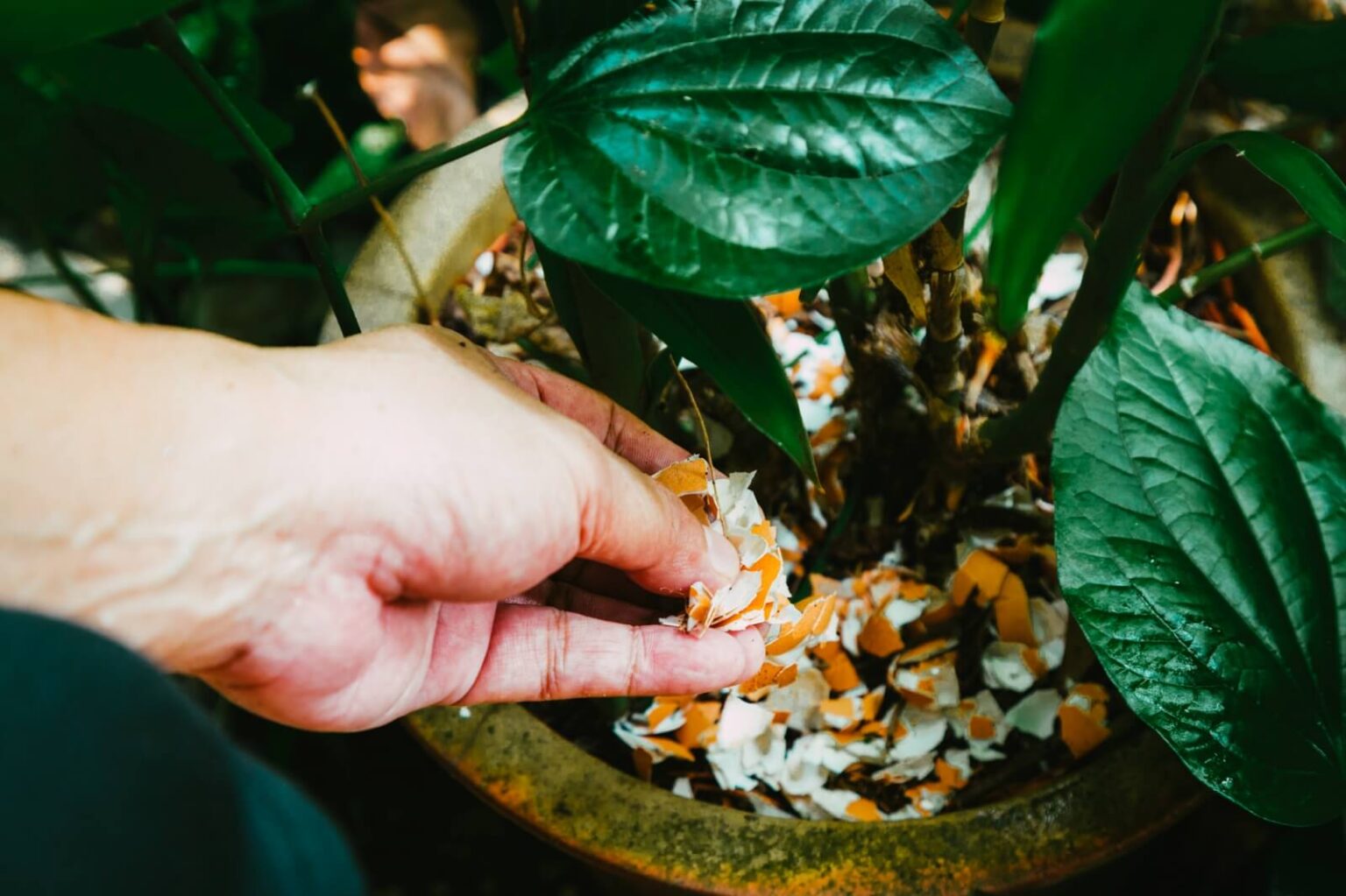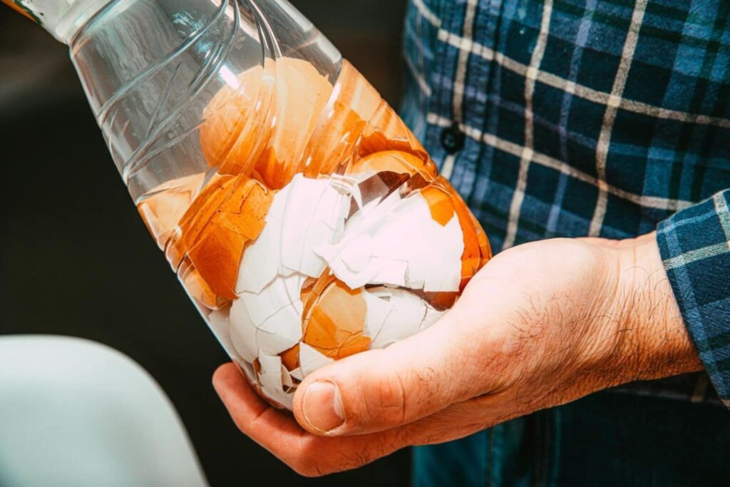 การใช้เศษเปลือกไข่หยาบๆ แล้วโรยบริเวณรอบๆ โคนต้นไม้ จะช่วยป้องกันพวกหนอนหรือหอยทากได้ เพราะผิวของมันไม่สามารถป้องกันความแหลมคมของเปลือกไข่ได้