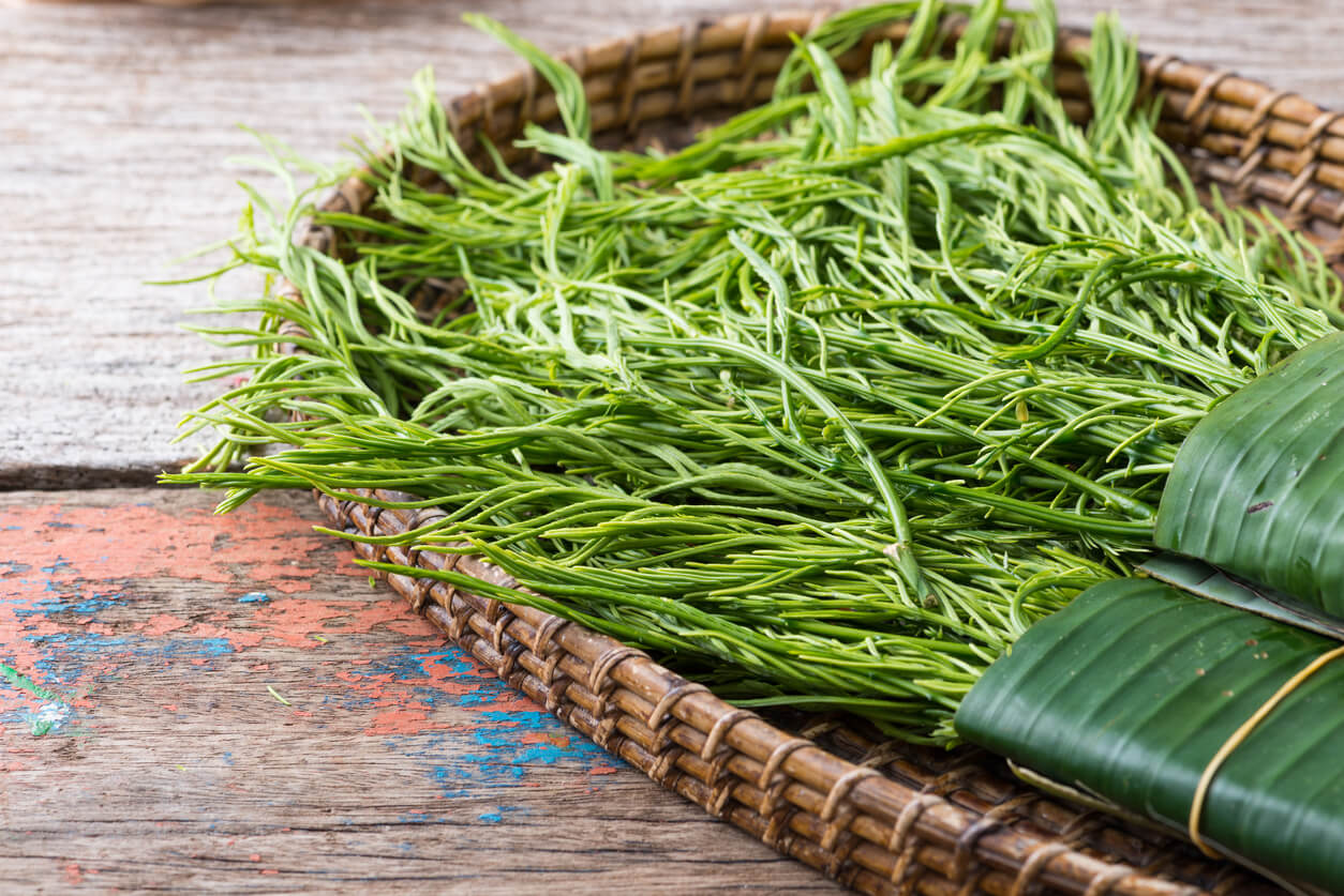 2. เลือกกิ่งที่แก่พอดีแล้วใช้มีดฟันต้นและกิ่งให้สูงจากพื้นดินประมาณ 1 เมตร เพื่อสะดวกในการเก็บยอด โดยเลือกฟันกิ่งและโน้มลงในทิศทางตรงข้ามกับดวงอาทิตย์ เพื่อให้กิ่งได้รับแสงแดดเต็มที่และทั่วถึง ทั้งยังช่วยให้บาดแผลแห้งและสมานเร็วขึ้น