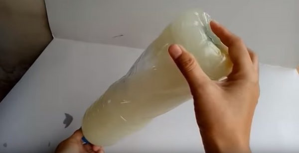 4. แล้วปิดฝาให้แน่นๆ จากนั้นก็ทำการเขย่าขวด เพื่อให้น้ำตาลทรายกับน้ำซาวขาวผสมเข้าด้วยกันจนหมด