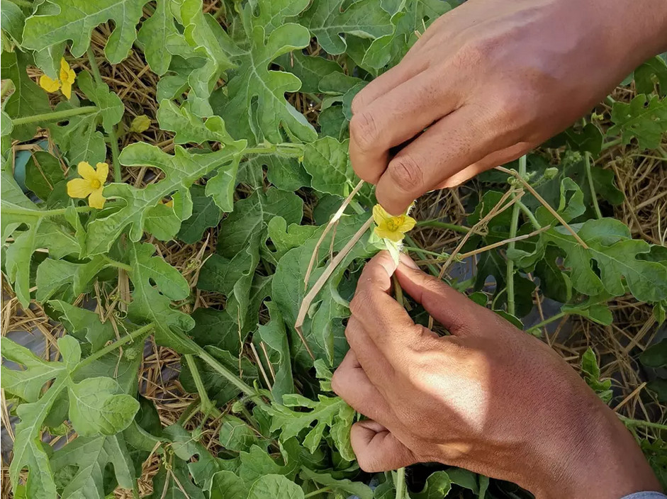 “การต่อดอกด้วยมือเป็นขั้นตอนที่หลายๆ คนมักมองข้ามแต่จริงๆ แล้วมีผลอย่างมากต่อการติดลูกที่สมบูรณ์ คือไม่ควรให้การผสมเกสรเกิดขึ้นตามธรรมชาติด้วยแมลง เพราะไม่สามารถควบคุมได้ว่าดอกไหนได้รับการผสมไปแล้วหรือการผสมนั้นสมบูรณ์หรือไม่ จึงแนะนำให้ต่อดอกด้วยมือ ด้วยการเด็ดดอกตัวผู้ที่บานมาปลิดกลีบออก แล้วจึงแต้มให้ละอองเกสรตัวผู้สีเหลืองจับอยู่บนเกสรตัวเมียอย่างทั่วถึงกัน”
