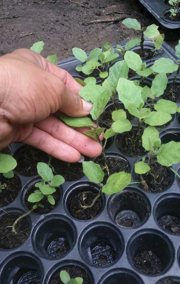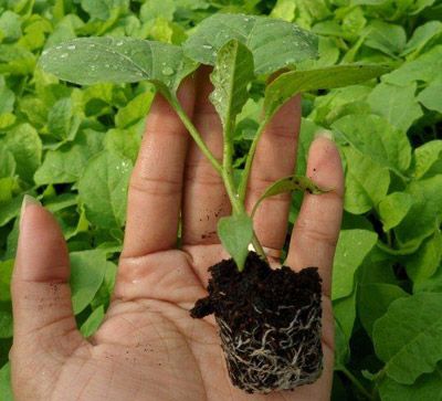 1.เริ่มขั้นตอนแรกโดยการการย้ายต้นกล้าที่เพาะไว้ โดยให้เลือกต้นสมบูรณ์และมีใบ 3-4 ใบ และมีความสูงประมาณ 7–10 เซนติเมตร