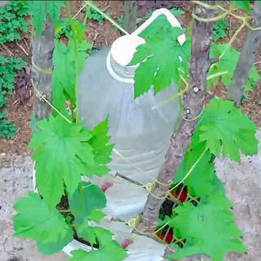 4. นำกล้าต้นมะระมาลงปลูกใส่รอบๆ ถังปลูกแล้วทำการนำเศษอาหารเศษผักมาใส่ไว้ในขวดพลาสติกตรงกลางแล้วเติมน้ำหมักชีวภาพลงไปแล้วปิดฝาทิ้งไว้